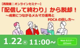 2026年1月22日(木)「配信して終わり」から脱却!~成果につながるメルマガ運用とPDCAの回し方~のセミナーを開催いたします。